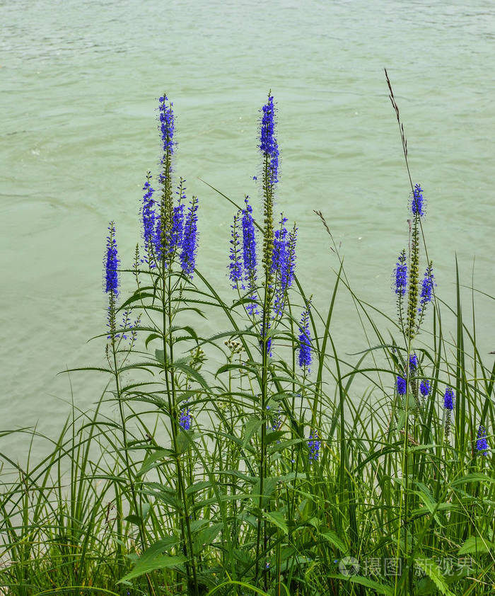 蓝婆婆麦冬花在河岸上照片 正版商用图片0tmg 摄图新视界